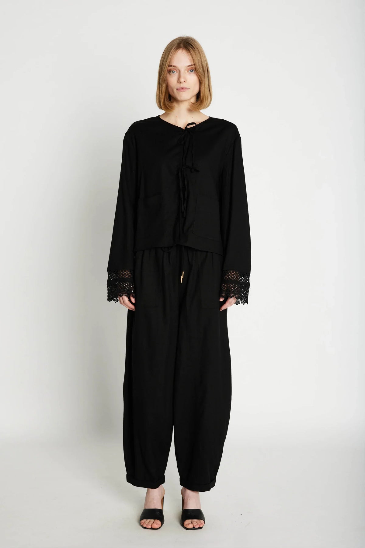 The Cameronia Pant delivers both comfort and style through its relaxed loose fit and distinctive balloon legs. Crafted from a breathable fabric mix of 71% viscose, 25% linen, and 4% spandex, it ensures lightweight wear with subtle stretch. The elastic waistband with drawstring provides an adjustable fit, while practical pockets add convenience. This ankle-length trouser adapts effortlessly from casual days—styled with a light shirt and sandals—to sophisticated settings paired with an elegant blouse and loafers.