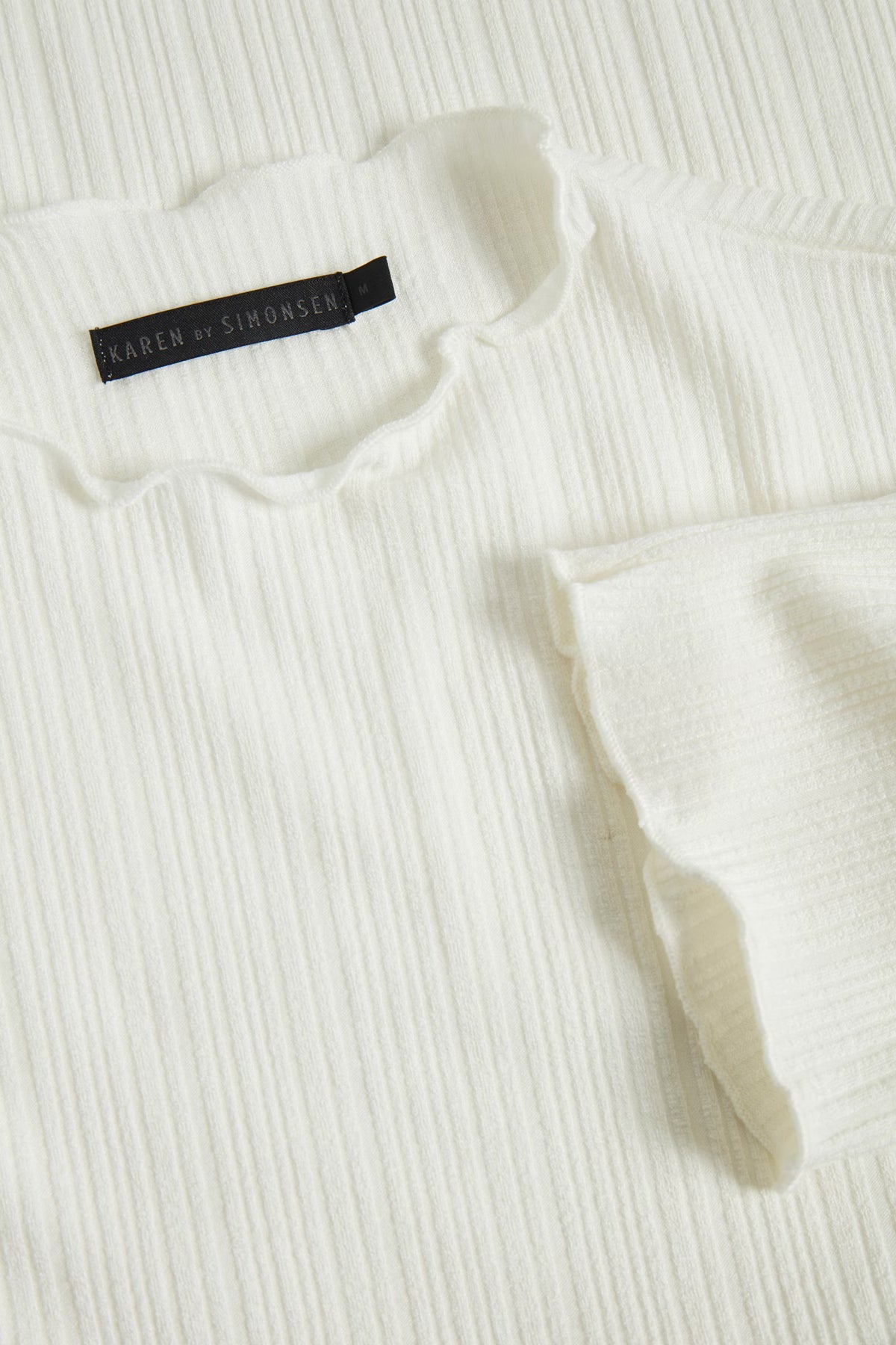 This knitted T-shirt is the perfect addition to any woman's wardrobe. Its feminine fit and hip length cut make it versatile to pair with any bottoms, from jeans to skirts. The short sleeves make it great for layering or wearing alone on warmer days. Made with high-quality materials, this T-shirt is both comfortable and durable. Complete your outfit by pairing it with matching accessories and shoes. The model is 180 cm and wearing size 36/S.