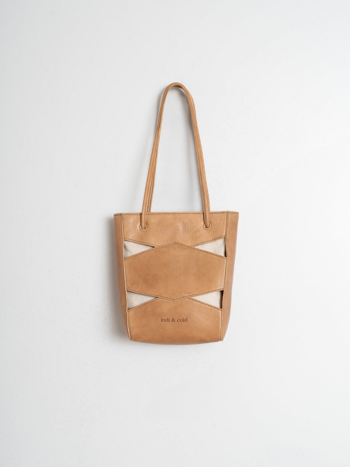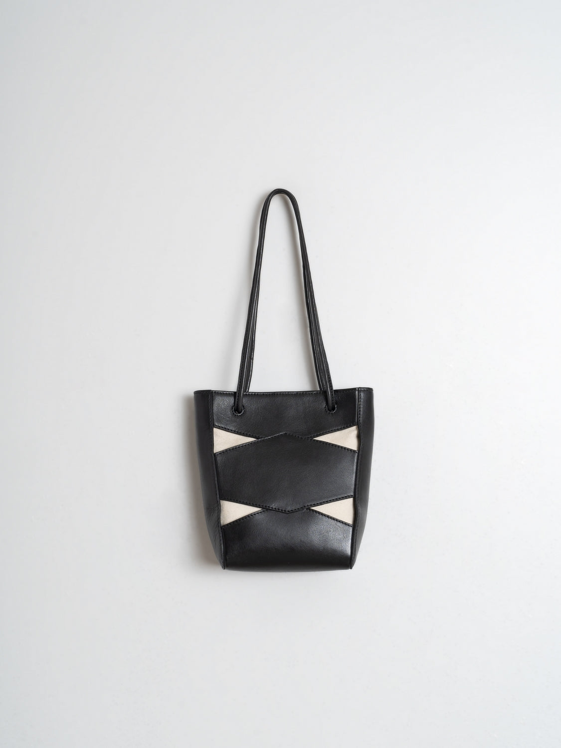 LEATHER BAG WITH CUT-OUTS AND CONTRAST INTERIOR