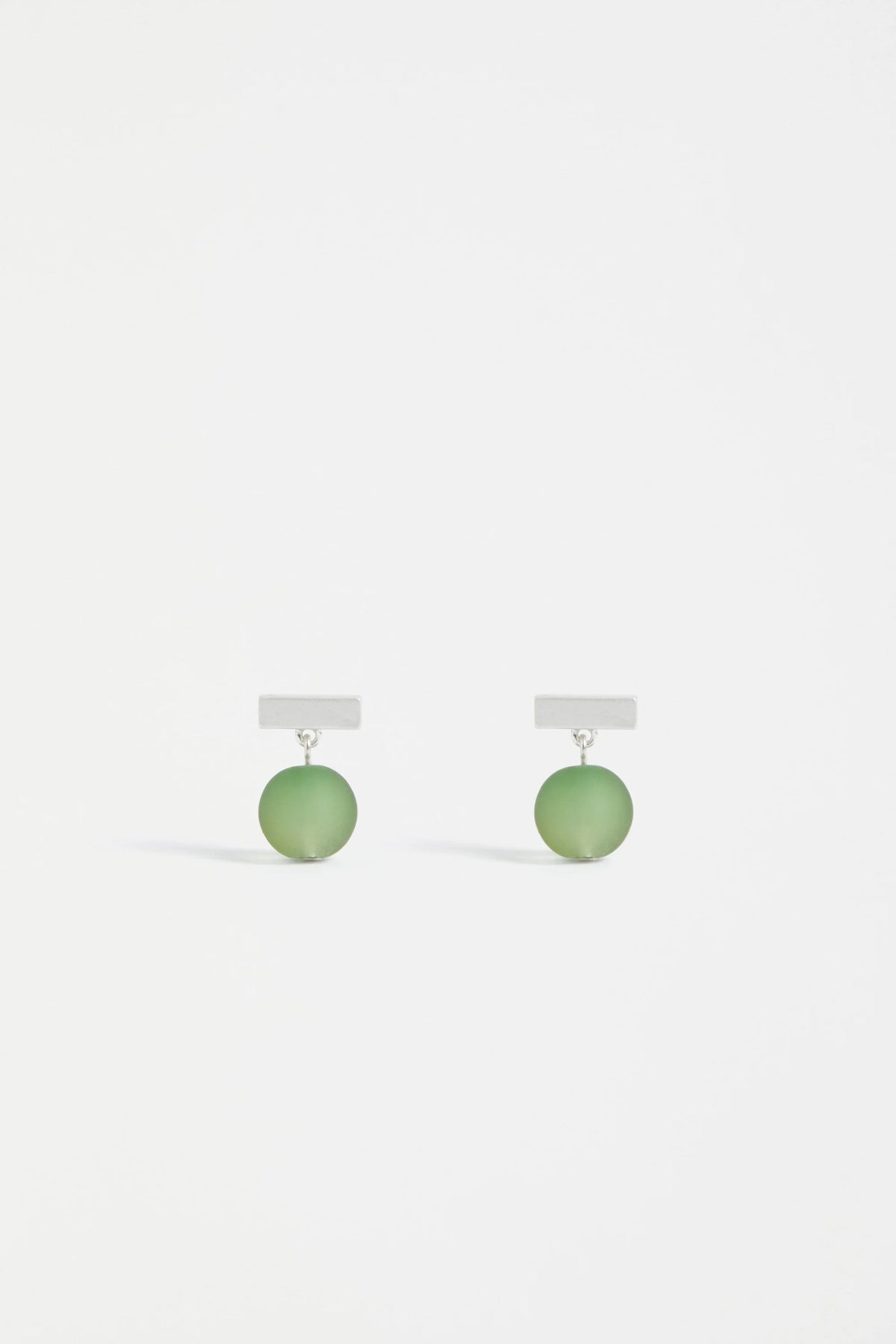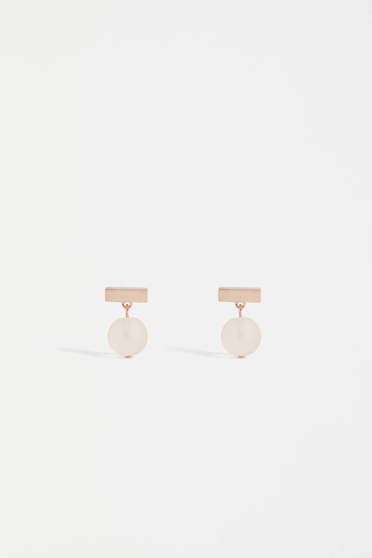 A minimalist design with subtle movement, this small drop earring features a brushed metal bar paired with a frosted glass bead. The bead's pastel colours bring a soft pop to any look, while the jump ring allows it to move effortlessly. They’re the perfect finishing touch, bringing a quiet sophistication to your day or night. Available in Rose Gold and Silver, these earrings are a sleek, versatile addition to your collection.