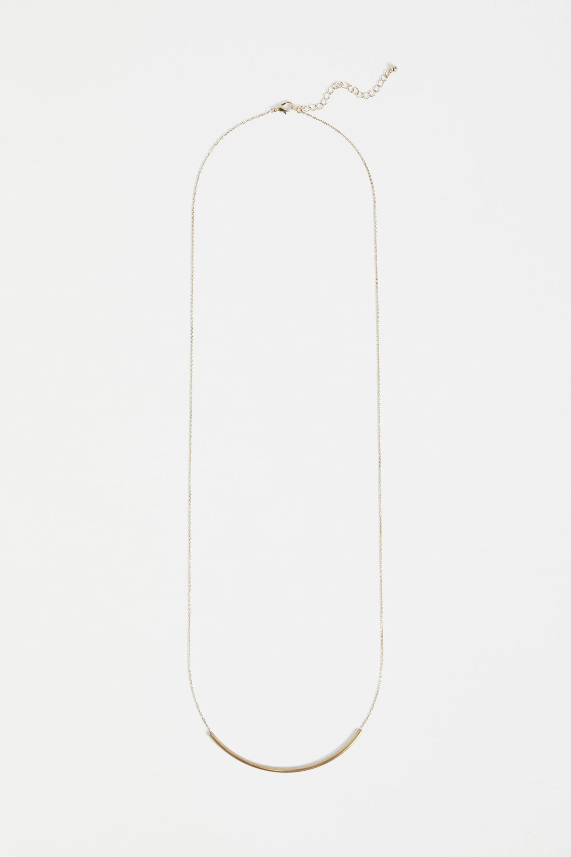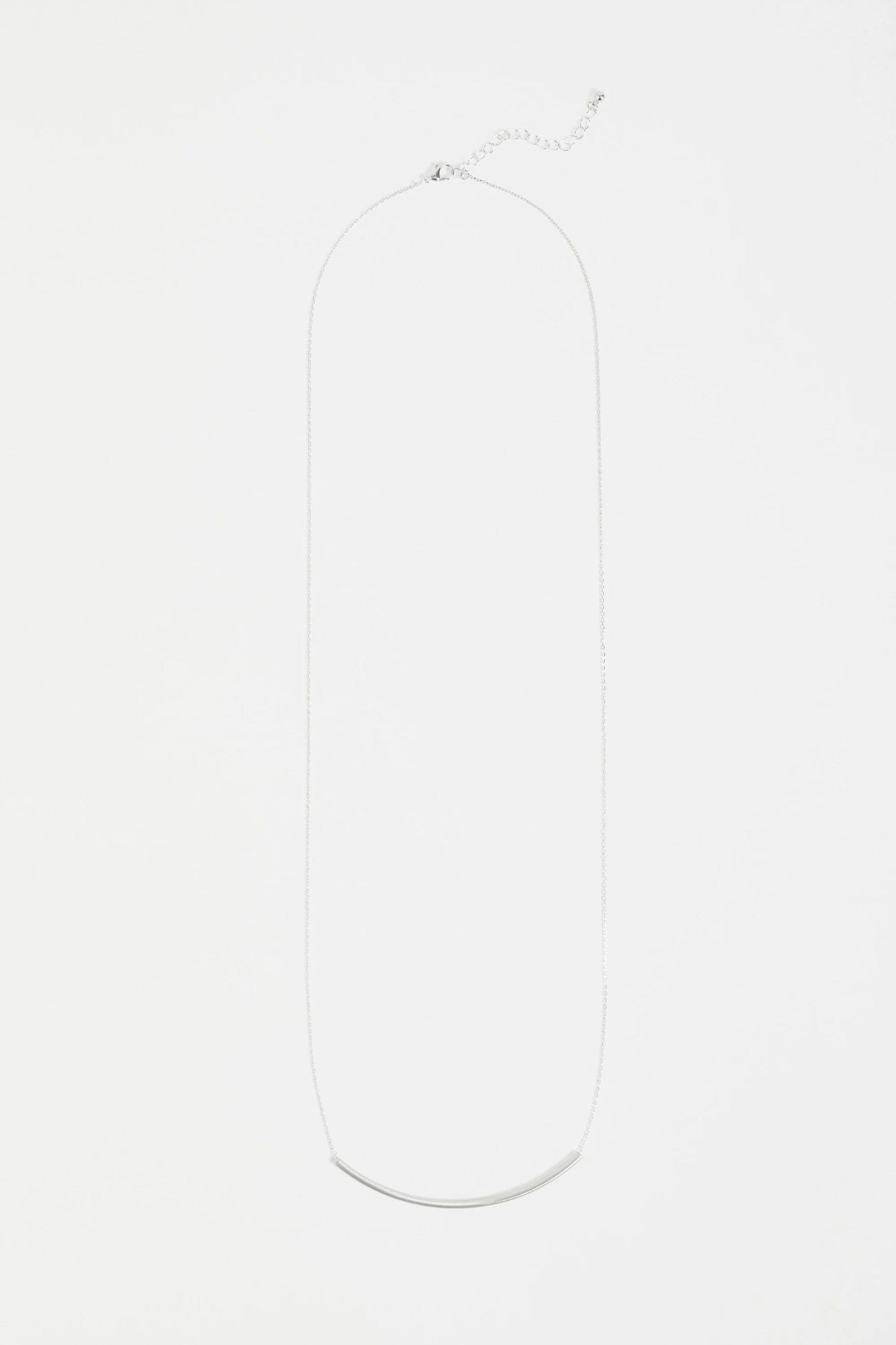 The Skara Necklace is a minimalist fine chain piece. Sleek crescent-shaped metal tube threads through a fine, flowing chain, creating an interplay of structure and movement. This longline style adds understated elegance to any outfit, whether layered over a crisp button-up or draped on a silky evening slip. Choose from three classic and versatile metals - Gold, Silver and Gunmetal.
